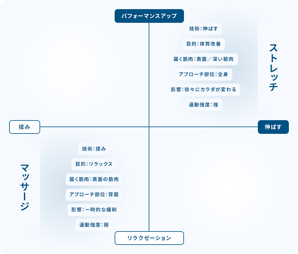 マッサージだけでは改善されない、疲労改善の根本原因を筋肉の柔軟性を上げて解決。